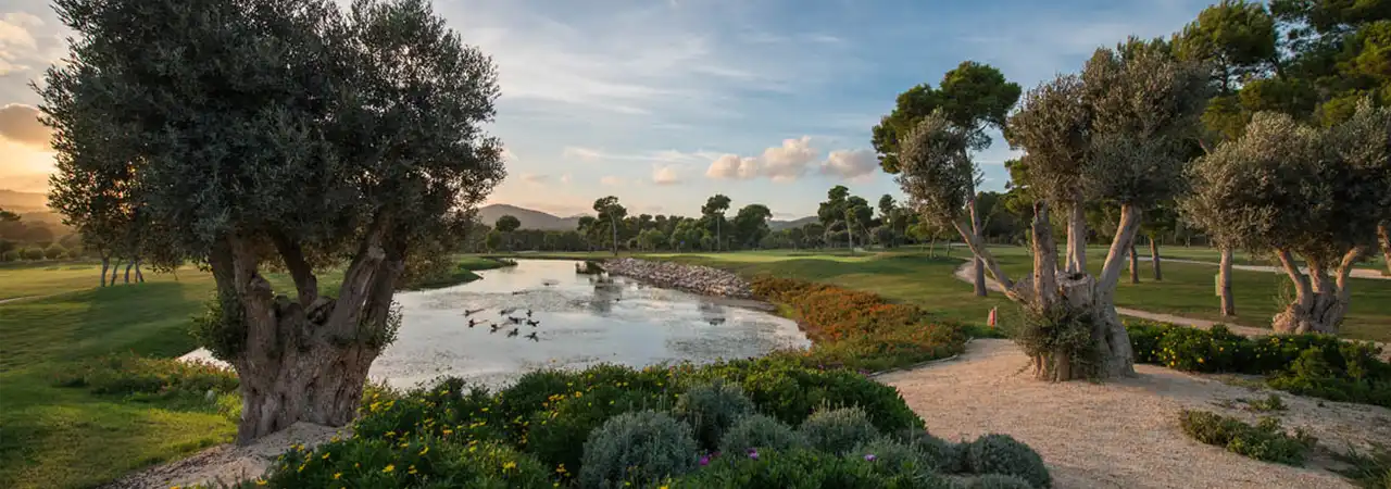 Son Servera is, for the greatest part, a gently undulating parkland course with generous fairways and rough kept to a length where finding the off line shot does not cause too many difficulties. The errant shot is much more likely to be punished by the intervention of one of the many evergreen oak, pine, olive, carob and palm trees that dot the course blocking the way to the pin. Holes 3 to 7 are undoubtedly different as narrow tree lined fairways venture into the hills and twist between the lakes and pines making this stretch the toughest test on the course.